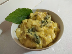 Pommes de terre avec sauce aux trois fromages et verts d’amarante