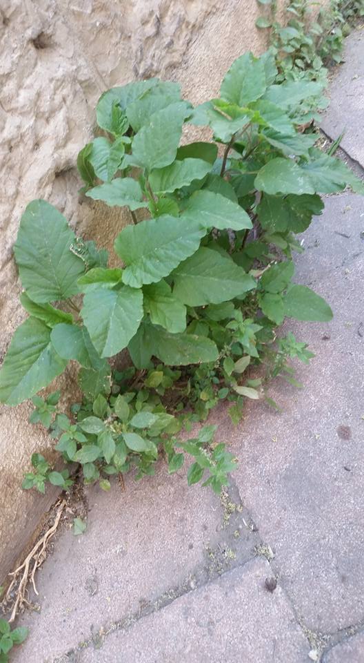 L’amarante et la pellitoire à côté l’une de l’autre. La pariétaire plus au premier plan et plus petite, et l’amarante plus grande et plus haute.