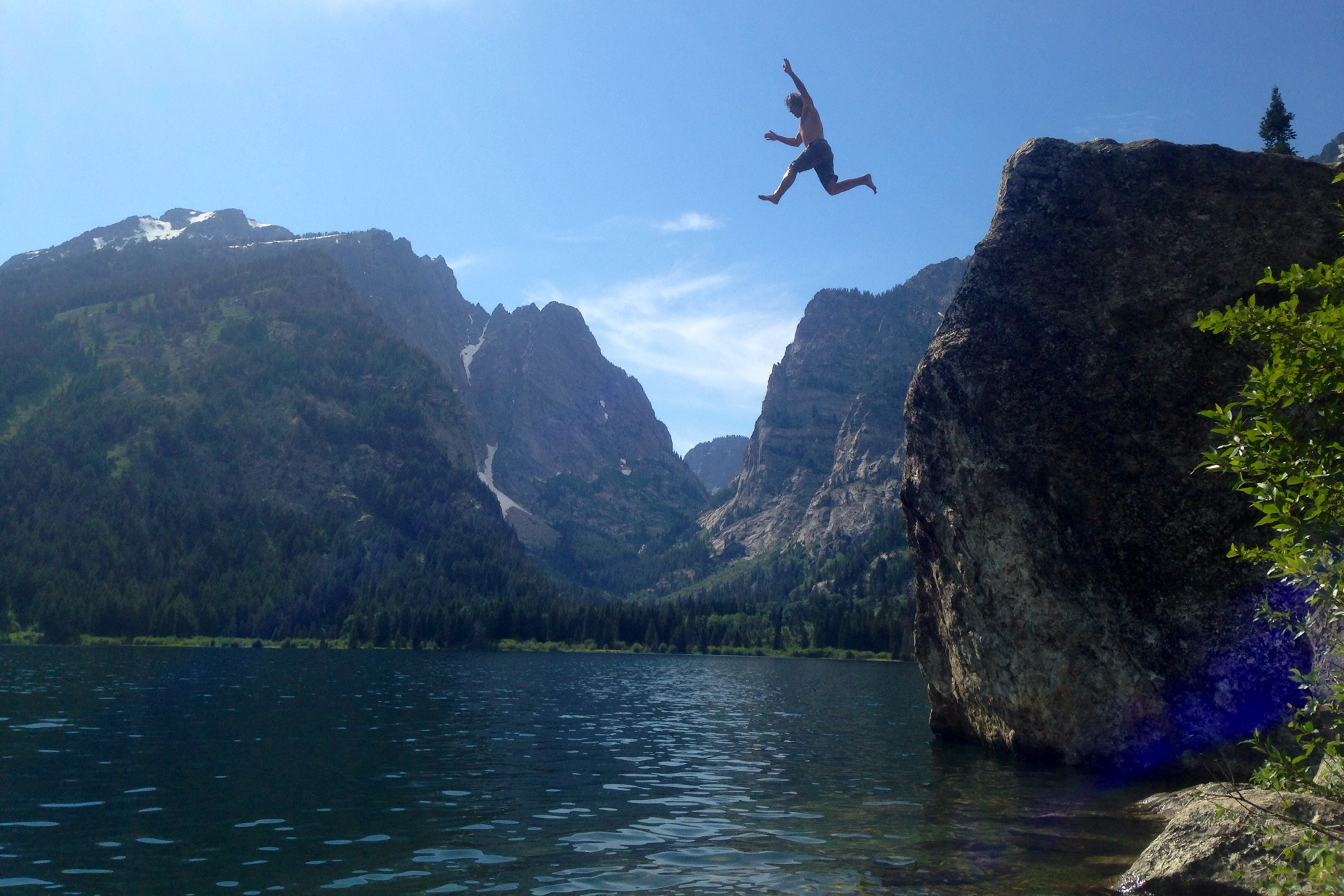 Phelps Lake is een van de beste zwemplaatsen in Grand Teton National Park, en absoluut de moeite waard, zelfs als je van plan bent droog te blijven. Uitzicht op de bergen, wilde bloemen, en veel oever betekent dat u gemakkelijk een hele dag aan de rand van Phelps Lake kunt doorbrengen. Dit is een populaire wandeling, dus kom vroeg om een parkeerplaats te bemachtigen!