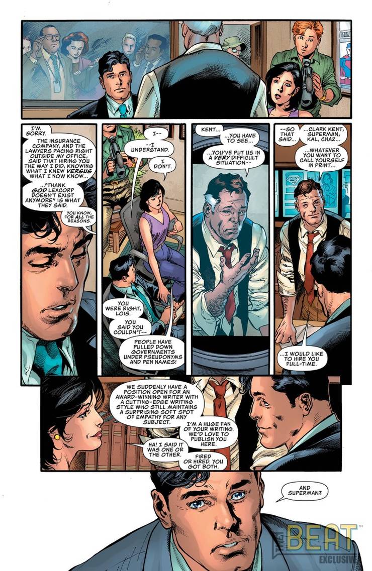V Superman #19 si Clark sedne s Lois a Jimmym v kanceláři Perryho Whitea, aby s ním probral velké oznámení. Zatímco se Lois snaží Perryho přesvědčit, že se ve skutečnosti nic nezměnilo, Perry mu vysvětlí, že Clark dostal celý Daily Planet do obtížné situace, a na místě ho vyhodí. Vyhazov netrvá dlouho, protože Perry okamžitě nabídne „Clarku Kentovi, Supermanovi, Kalovi, Chazovi… čemukoli“, po čem Superman jede, práci ve svém redakčním týmu.