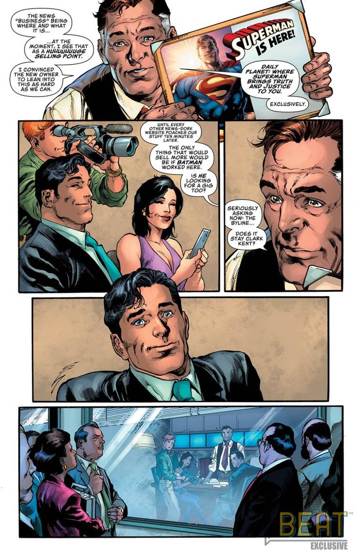 Superman v aktuální pokračující sérii Briana Michaela Bendise a Ivana Reise prochází vážnými životními změnami. Odhalil světu svou tajnou identitu, čímž překvapil mnoho svých nejbližších. Mezi překvapenými byl i jeho šéf Daily Planet a dlouholetý přítel Perry White. V ukázkách na Superman #19 (H/T to ComicsBeat) Perry nakonec Clarka po setkání s ním po tomto oznámení vyhodí.