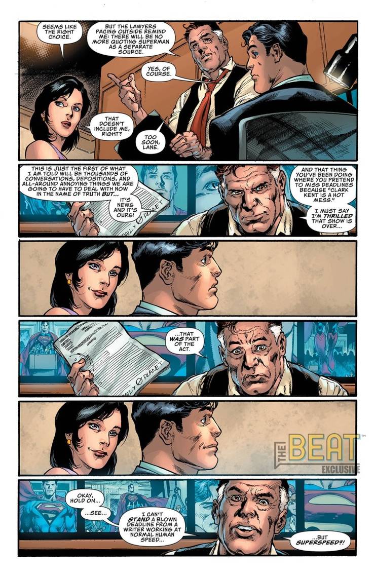 Jak se chce Daily Planet vypořádat s tím, že má Supermana ve svém redakčním týmu? No, Perry Clarkovi a Lois řekne, že mluvil s vyššími představiteli a že se hodlají do Supermana opřít, jak jen to bude možné. Takže Daily Planet je ochoten mít Supermana ve svých řadách – sakra, téměř jistě jim to zvýší prodej.