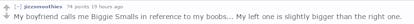 Någon borde tala om för den här killen att de flesta kvinnors bröst inte är exakt lika stora, dock.
