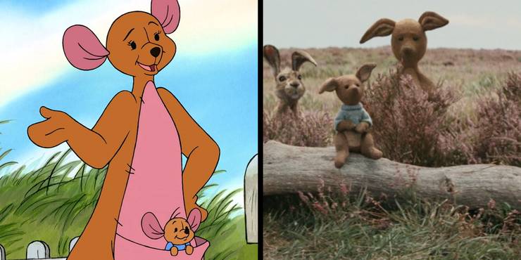 Schade für die Fans des Mutter-Sohn-Stofftier-Duos, denn Kanga und Roo bekommen in Christopher Robin nicht sehr viel Bildschirmzeit. Doch wenn sie auf dem Bildschirm zu sehen sind, ist ihre übliche Dynamik als beschützende Mutter und niedliches Kind in vollem Umfang vorhanden, wie zum Beispiel, wenn sie glauben, dass sie von einem marodierenden Heffalump bedroht werden. Wie Ferkel scheinen auch Kanga und Ruh aus unbekannten Gründen nicht sichtbar gealtert zu sein. Auch sie reisen nicht in die konventionelle Realität hinüber.