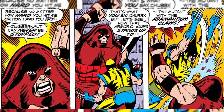 Wolverine s’est mesuré à certains des héros et des méchants les plus puissants de tout l’univers Marvel. Mais, quand il s’agit de s’attaquer au Juggernaut, Logan a de gros problèmes. Lors d’une des rencontres du personnage, Wolverine a fait de son mieux pour se frayer un chemin à travers son adversaire surpuissant et s’est retrouvé à se gratter la tête plus que l’armure de Juggernaut.
