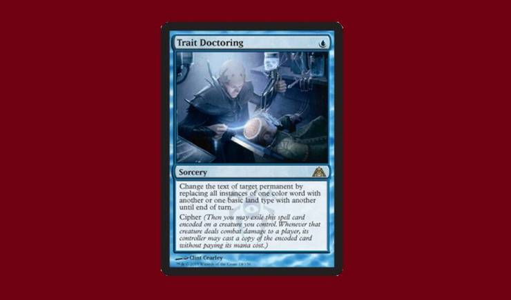 A kék a domináns szín az instantok és varázslatok esetében, de még a kék sem mentes attól, hogy néhány hibát kövessen el a kártyatervezésben. A Dragon’s Maze készlet hűvös fogadtatásban részesült, és az olyan kártyák, mint a Trait Doctoring megmutatják, hogy miért.