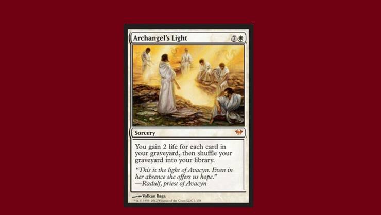 Itt kapunk egy újabb drága varázslatot, ami még csak meg sem indokolja a magas manaárát. 7W? Az ilyen manával jobb, ha megnyered a játékot, és az Archangel’s Light minden mást tesz, csak azt nem.