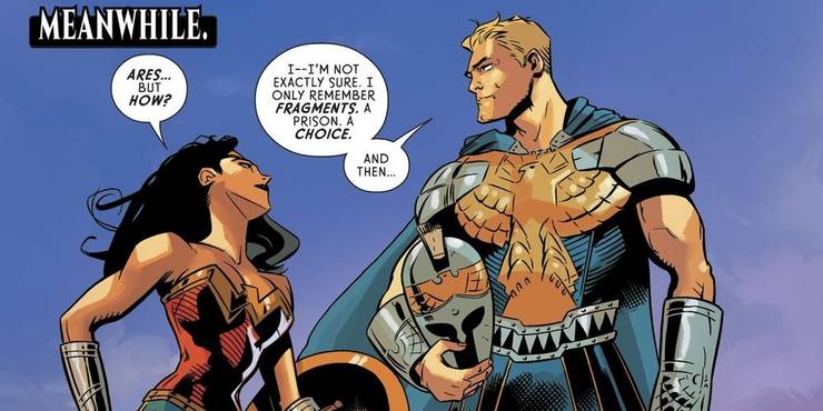 ワンダーウーマンのリードライターとしてのG・ウィロー・ウィルソンのデビュー作「The Just War」で、アレスは正義のチャンピオンとして戻ってきた。 しかし、彼の正義の定義は、ワンダーウーマンが罪のない人や非戦闘員を殺すことを含むので、彼女は戦争の神に対して再び武器を取る。