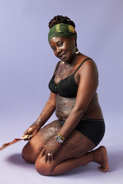 Mercy (în imaginea de mai sus) a fost victima unui incident de abuz domestic legat de incendiu. „M-am ars la vârsta de 29 de ani și a fost o călătorie dificilă pentru a mă împăca cu asta”, a declarat ea pentru Behind The Scars. „Consolarea pe care o primesc de la cicatricile mele este că ele mă fac ceea ce sunt astăzi. Le numesc cea mai prețioasă și cea mai scumpă bijuterie pe care o am. Am supraviețuit și dacă faptul de a mă fotografia și de a-mi expune cicatricile poate ajuta pe altcineva, atunci este bine pentru mine.”